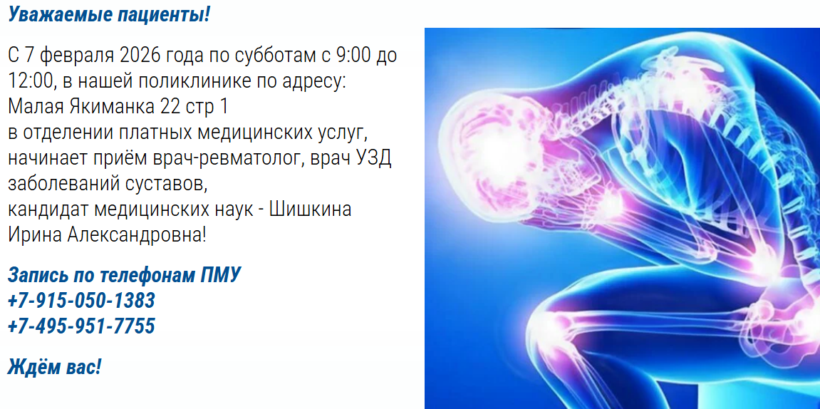 С 7 февраля 2026 года по субботам с 9:00 до 12:00, в нашей поликлинике по адресу: Малая Якиманка 22 стр 1